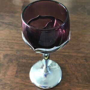 Beautiful Art Deco Cocktail glass in rare Amethyst color - glass and chrome holder/stem.