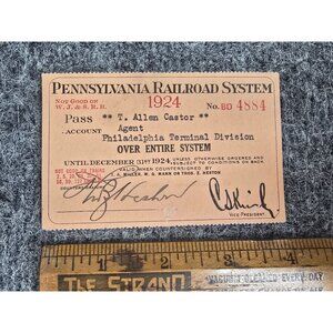 1924 Pennsylvania Railroad System Agent Pass Paper Ephemera No. BD 4884 Signed