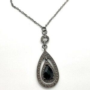 1928 Black Jewelry Victorian Teardrop Pendant Necklace, 19"