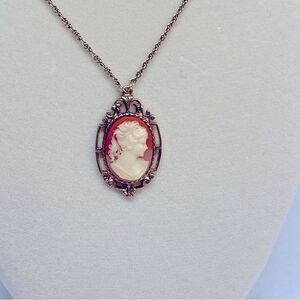 1928 Cameo Necklace on Gold Tone Chain 22” Gorgeous