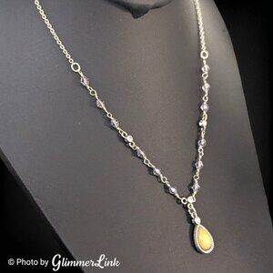 The necklace measures approximately 15 3/4" long with a lobster claw clasp and it has an additional 3" long chain extender.