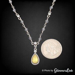 1928 Co Opalescent Green Yellow Teardrop Y-Drop Silver Tone Pendant Necklace