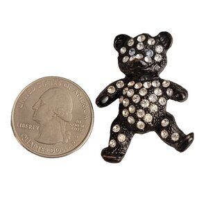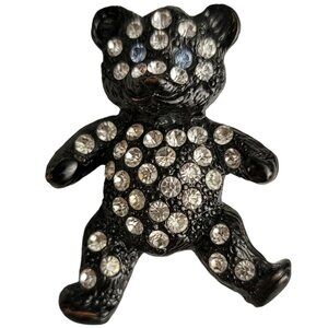 1928 Jewelry Co. Dark Silver Tone Clear Rhinestone Teddy Bear Pin