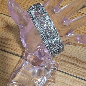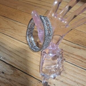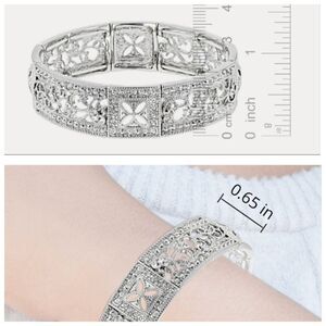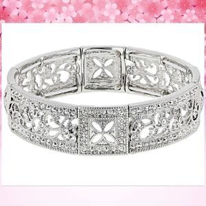 1928 Jewelry White Crystal Silver Tone Fancy Stretch Bracelet