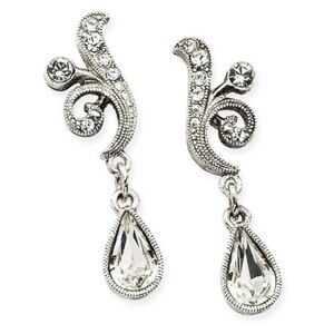 1928 SILVER-TONE SWAROVSKI ELEMENTS TEARDROP POST DANGLE EARRINGS