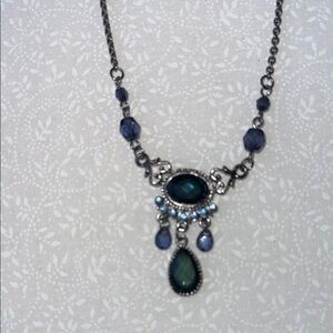 This stunning necklace from 1928 features a harmonious blend of silver and blue/teal, creating a captivating piece that adds a touch of sophistication to any outfit. The intricate design and quality craftsmanship make it a timeless accessory for any occasion.