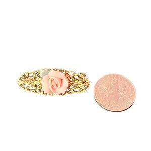 1928 Small Gold Tone Pink Rose Filigree Brooch