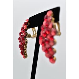 1928 Vintage Crystal Clip On Earrings Pink Red Antiqued Gold Shiny Chunky Bin7