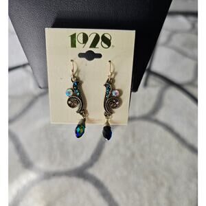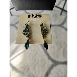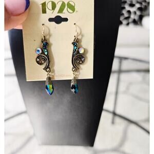 Brand new with tags, 1928 Vintage Style Earrings New. Lightweight Iridescemt stones, scroll detail, these measure 2 inches