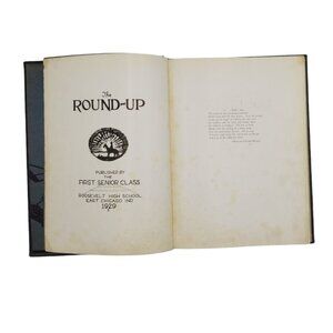 This historic hard bound yearbook from 1929 features detailed illustrations, photographs, and texts. A nostalgic piece from the first senior class of Roosevelt High School, East Chicago, IN. Very special and unique gift.