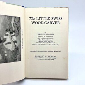 Hard-to-find 1929 first edition of The Little Swiss Wood-Carver by Madeline Brandeis. Includes original dust jacket + vintage photos. Solid collector piece from the “Children of All Lands” series.