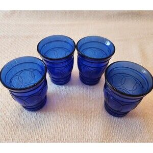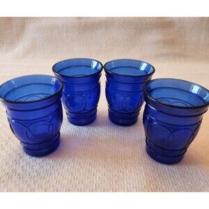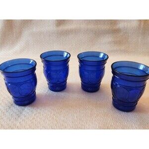 1930 Hazel Atlas Shot Glass Set of 4 Cobalt Blue Hour Glass Shape 3"