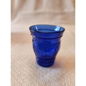 Elevate your barware collection with the 1930 Hazel Atlas Maryland Shot Glasses Set, a genuine testament to the elegance of Art Deco era glassware. Each shot glass in this set of four boasts a distinctive hourglass shape, complemented by a stunning cobalt blue color and a raised circle design, adding a touch of sophistication to your serving ensemble. Crafted from high-quality glass, these 3-inch vessels are suitable for a variety of beverages, from whiskey to brandy, and are ideal for both hot and cold drinks. Made in the United States, this original set showcases the superb craftsmanship of the period and is a perfect addition for collectors or those who appreciate the timeless allure of vintage glassware.