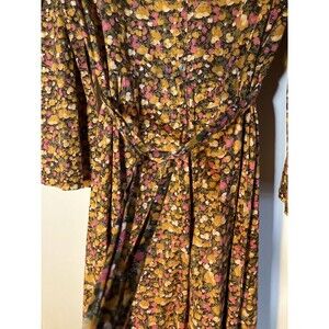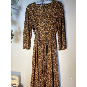 From ai : This 1930s vintage maxi dress is a large size, featuring a yellow floral design and an empire waist with a tie back detail. Made of cotton, this original piece exudes a Victorian-inspired look, perfect for a day dress occasion. The dress has a regular size fit and exudes a prairie style aesthetic that was popular during the 1930s.