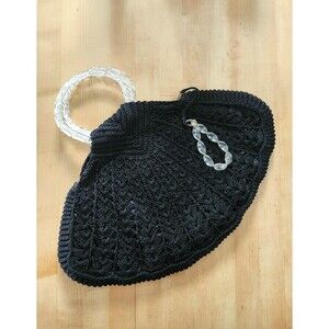 WW2 Era Crocheted Black Corde & Lucite Handbag