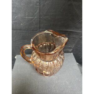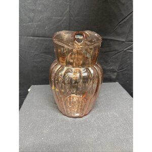 The 1930's Anchor Hocking Pillar Optic Pink Depression Log Cabin pitcher is a vintage glass piece with a round shape and a unique Pillar Optic/Log Cabin pattern. This
