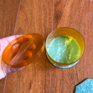 1930s Celluloid Art Deco Amber Blue Floral Powder Vanity Jar Trinket Box Jewelry.