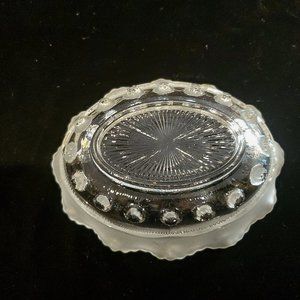 This cute little dish has a beautiful, frosted ruffled edge and would make a fantastic display piece, ring dish, jewelry dish, soap dish, trinket dish, candy dish, berry dish and many other things.