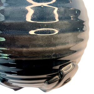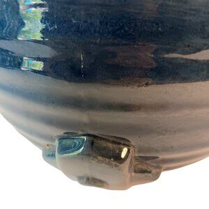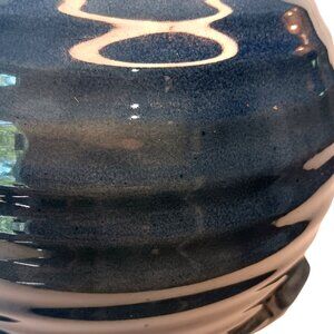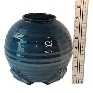 Deep blue ribbed geometric design Art Deco vase