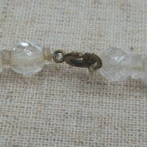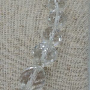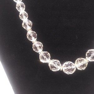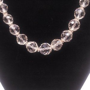 A 16" Graduating Faceted Rock Crystal Choker Necklace. The Material and Cut of the Crystals Depict an Art Deco Style. The Crystals Graduate from Larger to Smaller in the Back (5mm-15mm). Necklace has a Brass Spring Clasp.