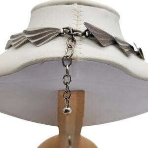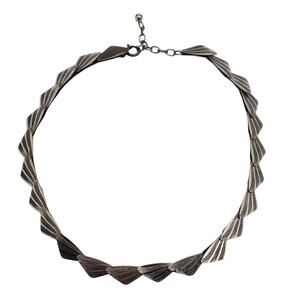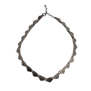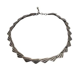 Moser + Pfeil beautifully made sterling silver necklace. The art deco necklace has a panel fan/wing shape link that is hinged. It has an extension chain and spring ring clasp.