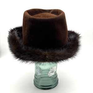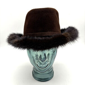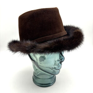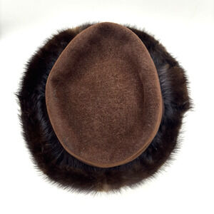 1930s The Emporium California Union Made Brown Felt w/ Mink Fur Trim Hat ~21"