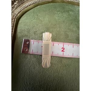This rare 1930s vintage carved Lucite garment clamp is a beautiful Art Deco-era accessory, originally used to hold lingerie straps, blouses, or scarves in place. Crafted from early white Lucite (or celluloid), it features elegant carved fan detailing and a sturdy spring clamp mechanism. A perfect piece for collectors of vintage fashion or period costuming.