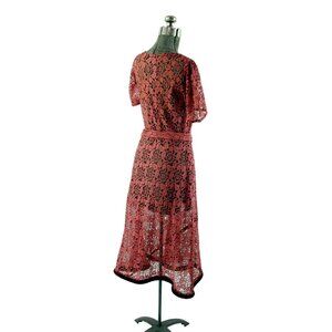 1930s lace dress and bolero rose pink and black with silk velvet trim Size M