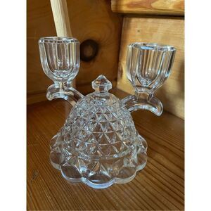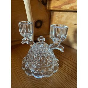 1930's Imperial Katy Lace Edge Double Glass Candle Holder, Candelabra
