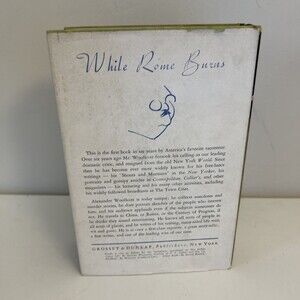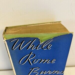 1934 While Rome Burns Hardcover Book By Alexander Woollcott With Dust jacket. Spine is intact. Dust jacket has multiple rips and spots due to age. Inside cover has some writing and an address label.