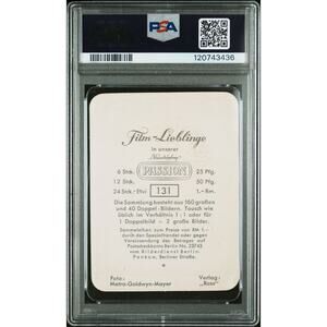 For this listing, I am presenting a 1937 Garbaty Cigarette Film - Lieblinge #131 Clark Gable Card in a PSA 4! This is the oversized Garbaty card, there are only 8 of these graded through PSA! This is not an easy card to find! Please see my other Vintage Clark Gable and Hollywood Listings!