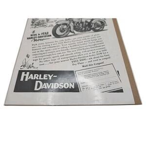 This vintage magazine print ad from 1937 features a Harley-Davidson motorcycle and the phrase "Get the Jump on 1938!" It's a great addition to any collection of Harley-Davidson memorabilia or vintage advertising. The ad was made in the United States and is a piece of American history. It's perfect for display in a garage, man cave, or any other space where it can be admired.