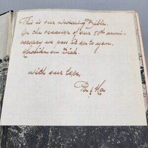 • Includes personal inscription on front page, photos and other information about the family to whom this bible belonged