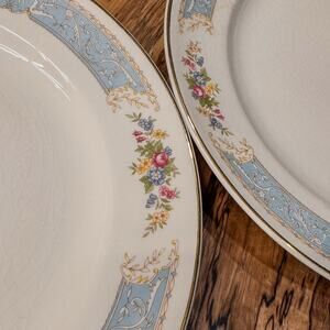 1939 Edwin Knowles-Blue Dawn Collection, Semi-Vitreous-Plates-10”- Set of 4. Each plate has a different amount of Crazing. Style discontinued in 1943.