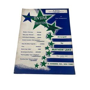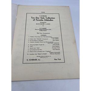 1939 G Schirmer Ten Star Solo Collection - Delight in a cherished compilation of favorite melodies for B♭ Clarinet, complete with enchanting piano accompaniment. This vintage sheet music transports you to a world of musical magic, offering a collection of beloved solo pieces expertly arranged for clarinet and piano. Whether you're a clarinet player, a music enthusiast, or a collector of vintage sheet music, this edition is a prized addition to your musical repertoire.