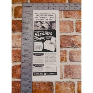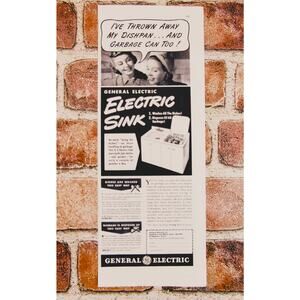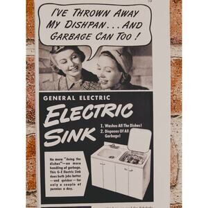 Step back in time with this charming 1940 Vintage General Electric - Electric Sink - Dishwasher Disposall Retro Home Appliance Print Advert