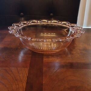pink in color, 1930-1935 Anchor Hocking glass bowl.