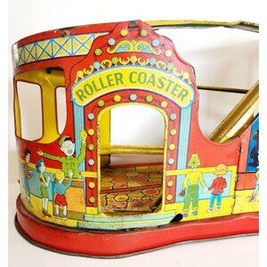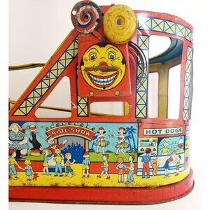 1940-50s J. Chein Tin Litho Wind Up Rollercoaster Toy Antique Circus INVRM