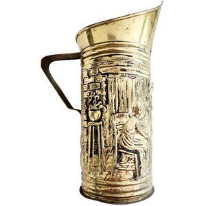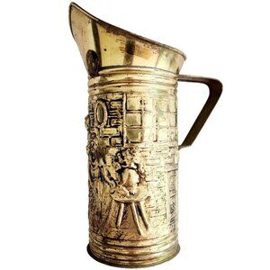 1940-50s Peerage Brass Decorative Pitcher Homestead Farmhouse Scene Antique E54