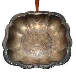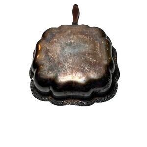 1940s 12” Canterbury Silver Plate Chafing Ornate Dish Stash Tray Wooden Handle. Shipped with Economy Shipping.