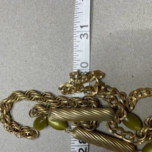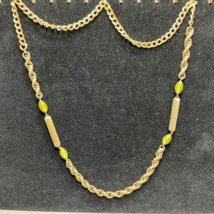 1940's 30" Continuous Matte Gold Tone Chain with Green Moon Glow Accent Beads