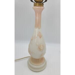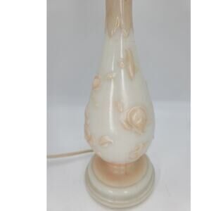 1940's ALADDIN Alacite Ivory Opal Glass & Peach Table Lamp Raised Floral Finial