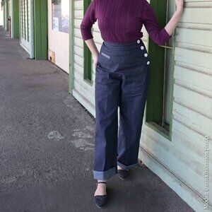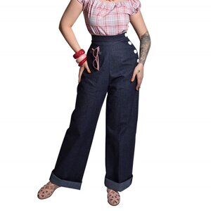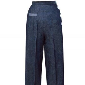 1940s Blue Denim High Waist Button Detail Wide Leg Pants/Trousers
