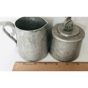 1940s Buenilum Hammered Aluminum Cream & Sugar Set & Serving Tray Metalwork USA