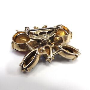 The back of the brooch is stamped Coro in script and fitted with a riveted rolling C clasp. The butterfly’s tiny eye indentations are present but no longer set; this minor detail does not detract from the beauty or collectability of the piece. A classic and colorful example of 1940s Coro craftsmanship, perfect for collectors or as a lovely gift.