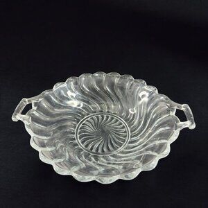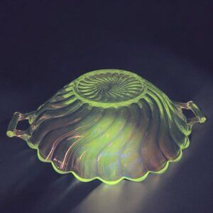 1940s Fostoria Colony Swirl Dish Bowl Clear Glass Manganese 365nm Green Handles