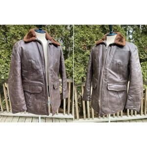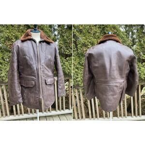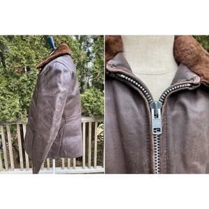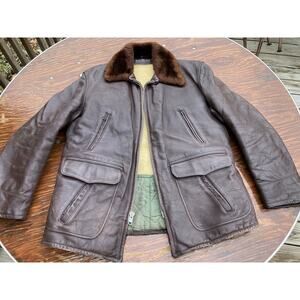 1940s Front Quarter Horsehide Shearling Lining Leather Coat Jacket 44 Vintage