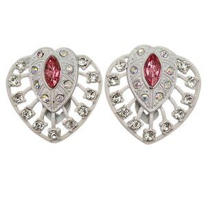 1940s Fur Clip White Enamel Pink AB Rhinestone New Old Stock