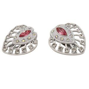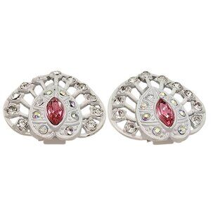1940s Fur Clip White Enamel Pink AB Rhinestone New Old Stock C372