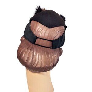 Genuine 1940s true vintage dark brown felt tilt style hat with dark glossy brown real mink tails fur trim in the front. A back ribbon band holds it onto the head.